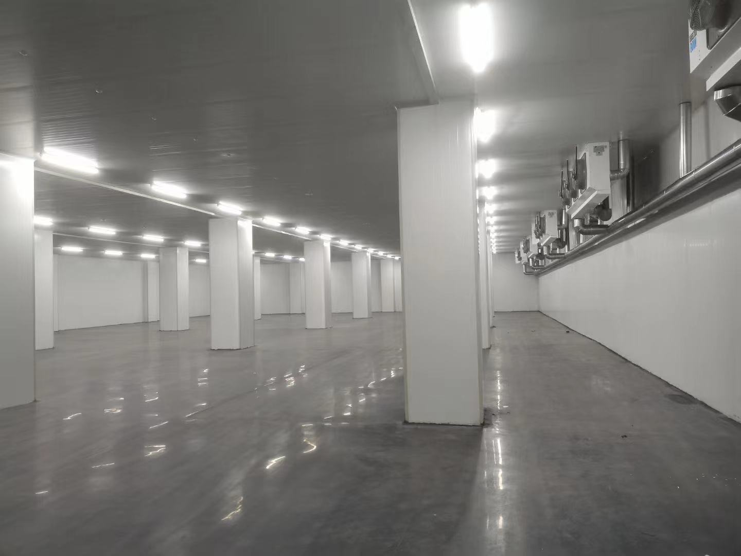 采用 “贯通式” 布局:大型冷库取消中间隔墙,改为柔性分区(用保温帘分隔),既能满足不同温度需求,又能避免隔墙占用有效存储面积。